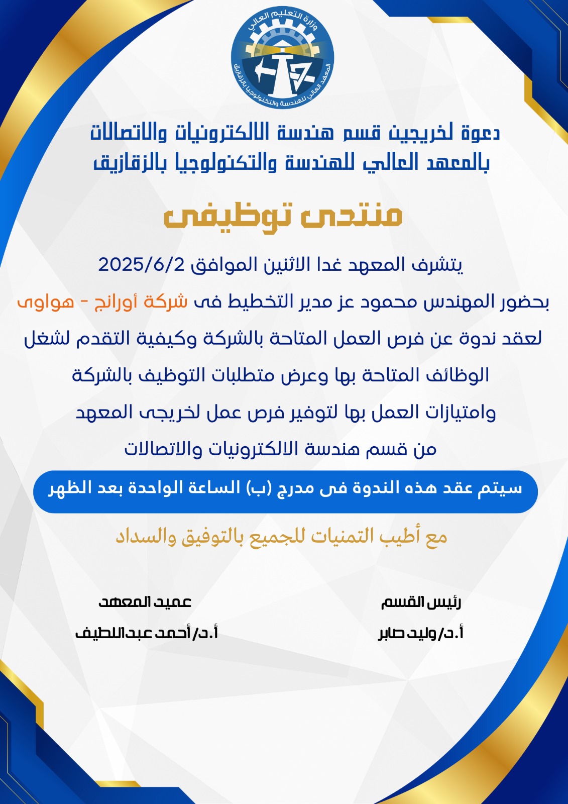 دعوة عامة لخريجين قسم الهندسة الكهربية بالمعهد للمنتدى التوظيفى
