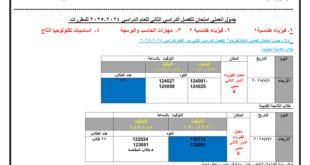 جداول امتحانات الفصل الدراسي الثاني لجميع الفرق وجدول مقررات التخرج للعام الدراسي 2024-2025